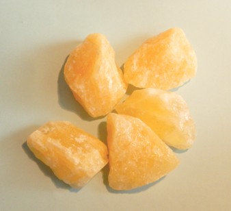 Calcit gelb (Orangencalcit) Rohstein Diese gelben Calcite in intensiven Orangetönen haben einen schönen Glanz. Durch diese auffalende Farbe sind schon die Rohsteine ein schöner Blickfang! Fundort: Durango/Mexiko
